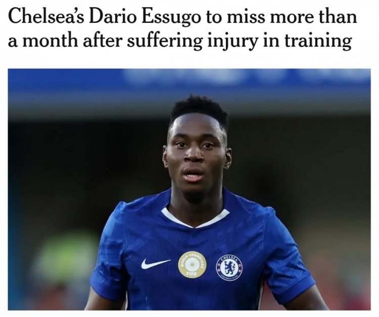 1月24日讯 TA报道,切尔西中场埃苏戈在训练中意外受伤,将缺席一个多月。