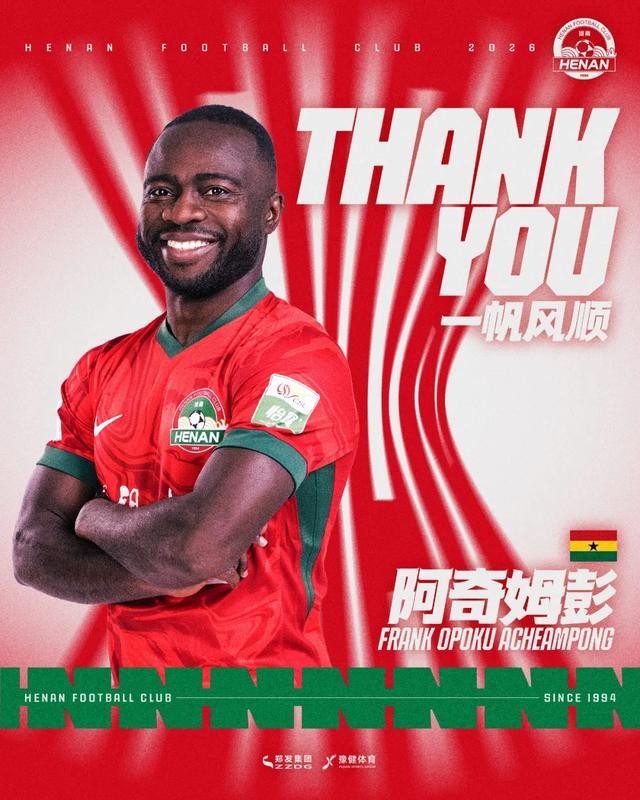 1月12日,河南足球俱乐部官方宣布,阿奇姆彭、卡多索、尹鸿博等10名球员因合同到期正式离队。这一重磅公告正值球队冬训集结前夕,其中锋线核心阿奇姆彭与卡多索的双双离队,意味着河南队新赛季锋线将迎来重建。